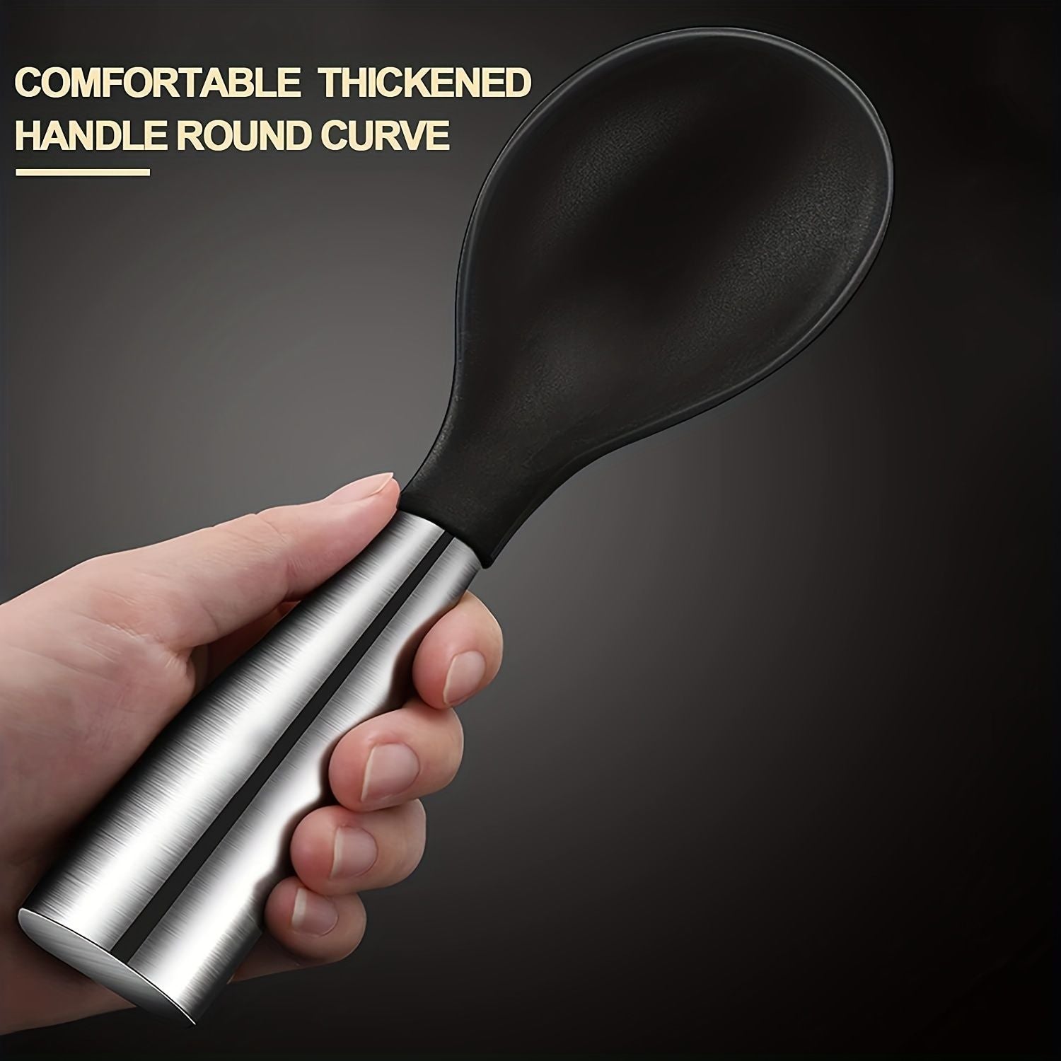 Rice Paddle; Silicone Standing Rice Spoon; Stainless Steel Handle Rice Scooper; Round Edge Not Rust Rice Serving Spoon; Non-Stick Rice Spatula Kitchen Gadgets