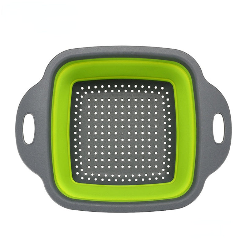 Collapsible Colander Set Of 2; Silicone Square Strainer With Handle For Kitchen Food Draining Pasta Vegetable Fruit And Meat