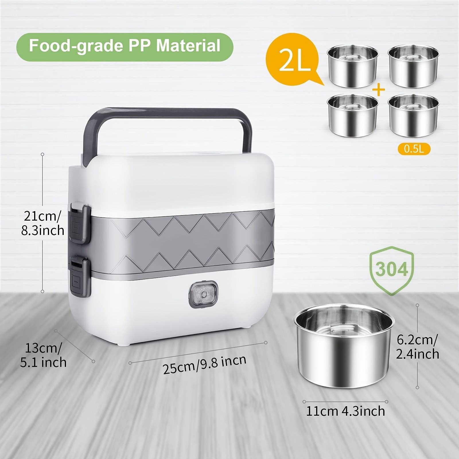 1pc Electric Lunch Box; Food Heater; Portable Food Warmer For Home And Office; Self Heating Lunch Box; Stainless Steel Food Container; Heated Bento Box For Adult; 2000ml/70oz (110V; 200W)